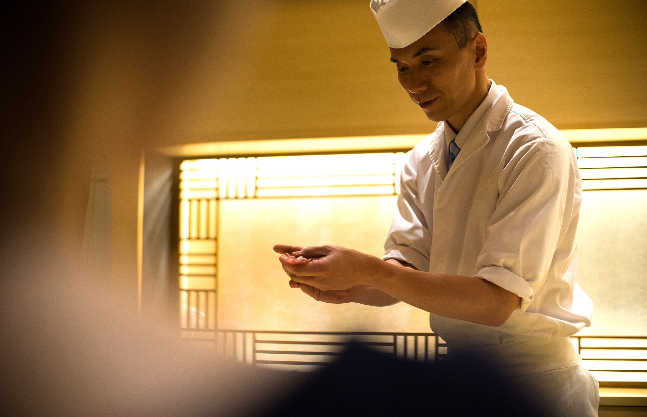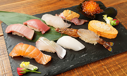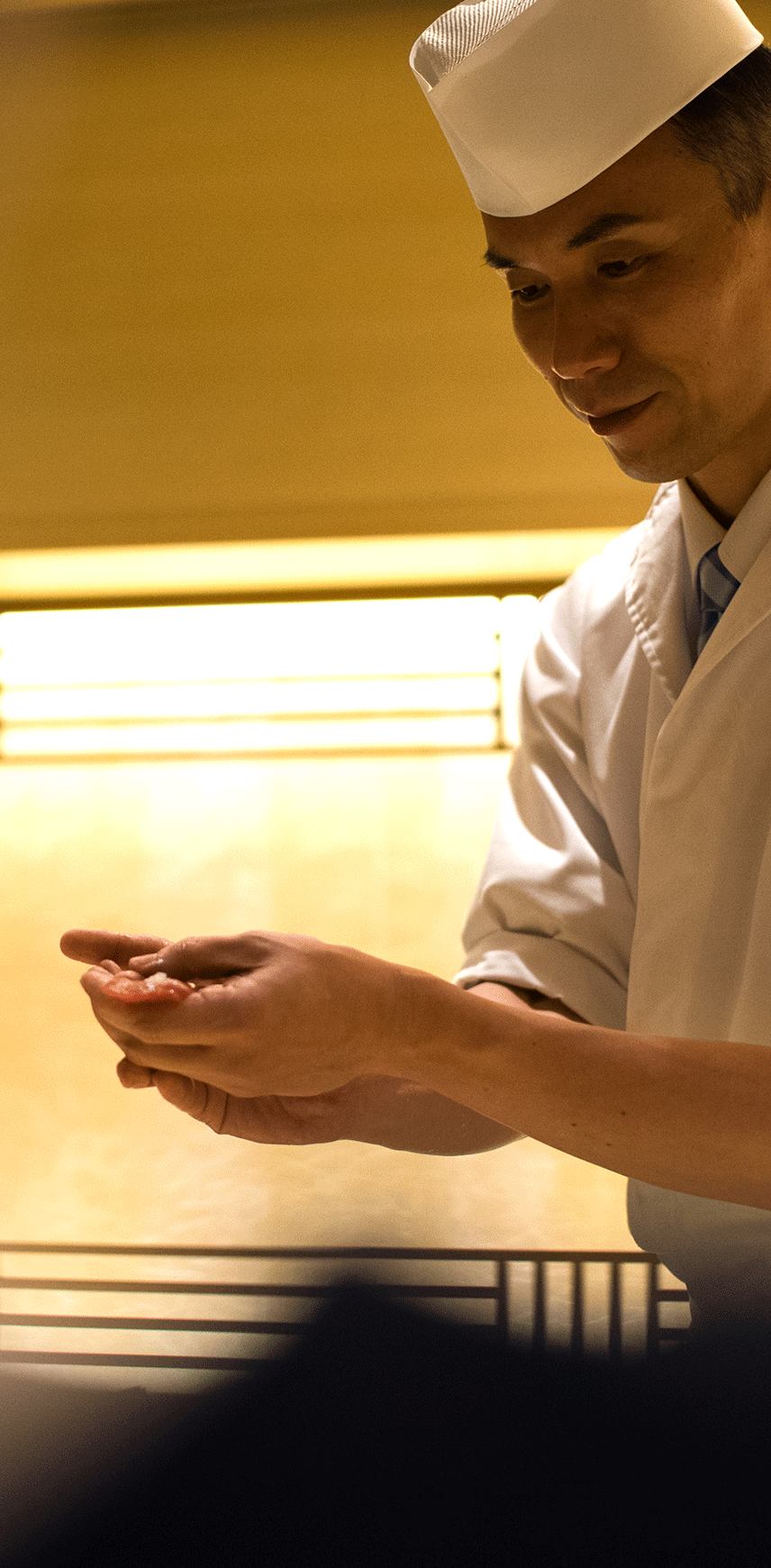 握り/お造り毎日、大将自らの確かな目利きによる仕入れを行なっております。天然物や新鮮で活きの良い素材にこだわり、季節や地域ごとの旬な食材や魚を厳選してご提供いたします。当店の握りは小ぶりの酢飯で固めに握ることで口の中に空間ができ、シャリの旨味とネタの風味を存分に感じていただけることと存じます。